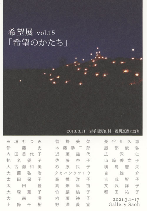 「希望展 Vol.15 -希望のかたち」 ギャラリー砂翁 日本橋/東京 (3/1-17) |