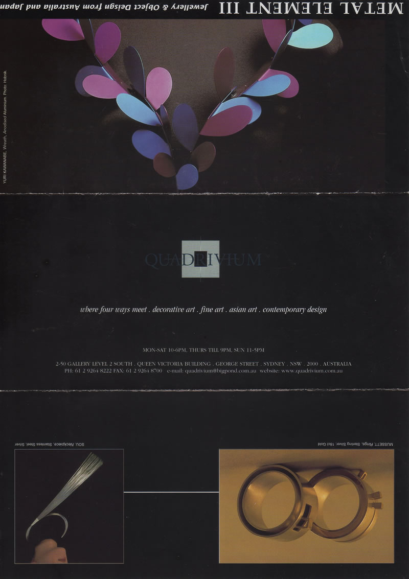 | 1999 | グループ展 | 「Metal Element U」 QRIVIUM Gallery NSW Art Gallery /オーストラリア |