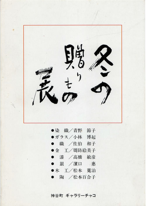 | グループ展 | 「冬の贈りもの展」 ギャラリーチャコ 神谷町/東京 (12/14-25) | |