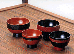 大竹 信一 唐草布目椀 12.5×12.5×7.5cm 栃 漆塗り ぶどう布目椀 10×10×7cm 栃 漆塗り |