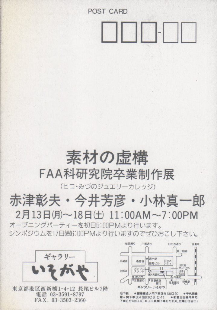 1995.02/13-02/18 ヒコ・みづのジュエリーカレッジFAA科研究院卒業制作展−素材の虚構−